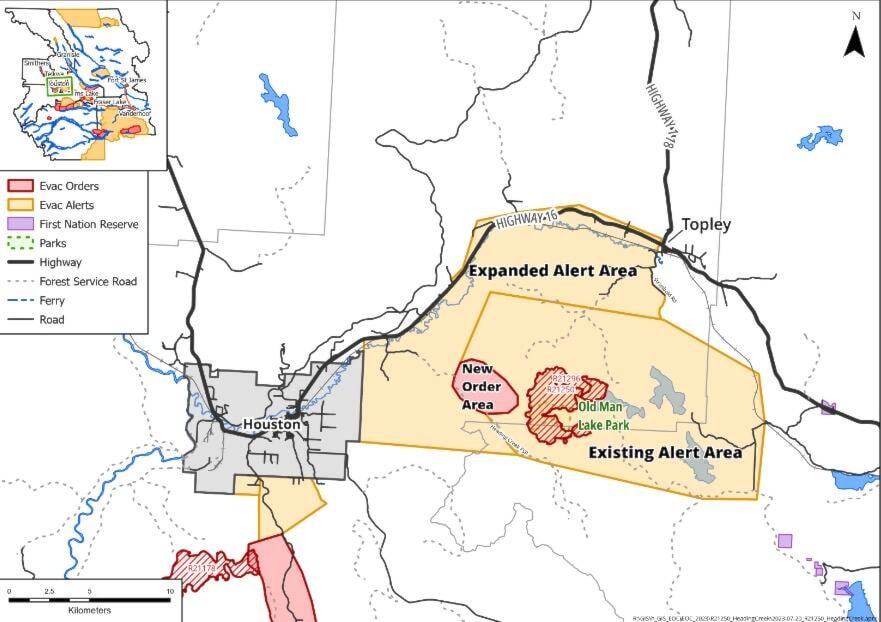 Fire growth spurs evacuation order east of Houston Burns Lake