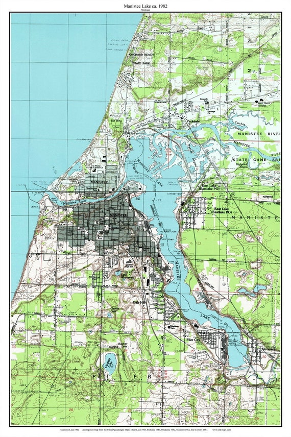 Manistee Lake 1982 Map Print Michigan Old Topographic USGS Custom